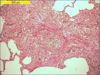 Figure 2b Lung tissue specimen showing complete destruction of a bronchiole.
